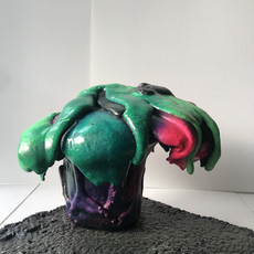 Expanding foam, resin, tarmac, NEON GREEN & PINK BASE LAYER, CHROMACOAT VOODOO (flip paint).